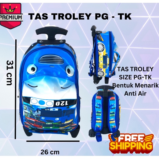 Detail Tas Troley Sekolah Anak TK Tas Bus karakter tas mobil 3D On The Road TROLI OTR TAYO BIRU