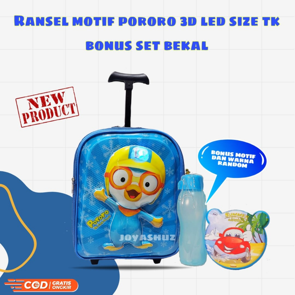 Fashion Bayi & Anak > Tas Anak Laki-Laki > Tas Troli > Tas Troli Anak Laki Laki Karakter Pororo Gratis Bonus - Ransel Anak Laki-laki - Ransel Troli Anak TK - Troli Pororo - Tas Gratis Botol - Tas Sekolah Anak Troli - Pororo - Tas Dorong Pororo - Joyashuz
