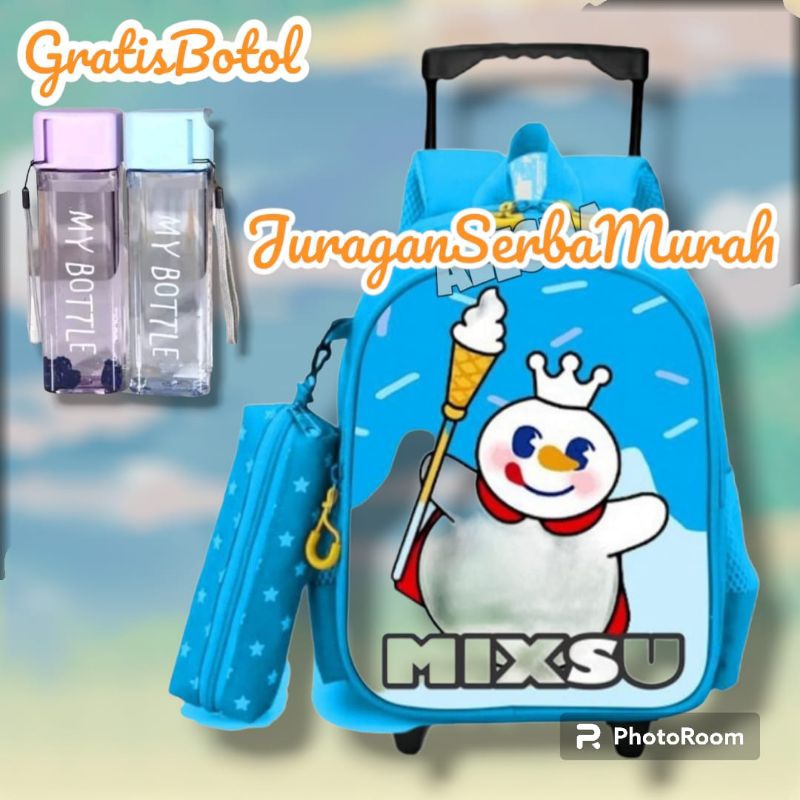 Detail Tas Troli Tas Dorong Anak perempuan TK SD Karakter Mixue Viral Gratis Botol