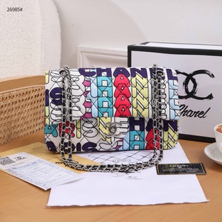 CH New Multi Color Rainbow Fabric Gold Leather Chain Shoulder Flap Bag 26985