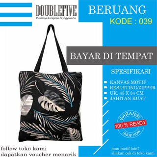 TOTE BAG WANITA TOTE BAG PRIA CANVAS MOTIF GOOD QUALITY WITH RESLETING KODE - 006
