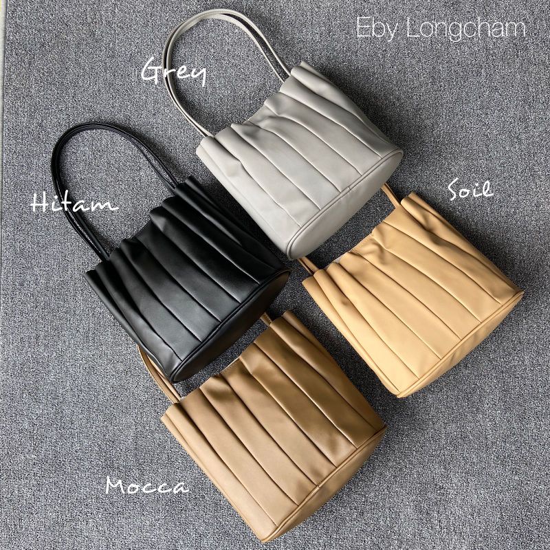 EBY LC BAHAN LONGCHAM WARNA HITAM GREY MOCCA SOIL ACC GOLD SATU RUANG DENGAN PENUTUP MAGNET LAPISAN FURING UK 22X 23X 12CM BERAT 300 GR ECER 41K RES 37K SERI 35K GROSIR 34K PARTAI 31K