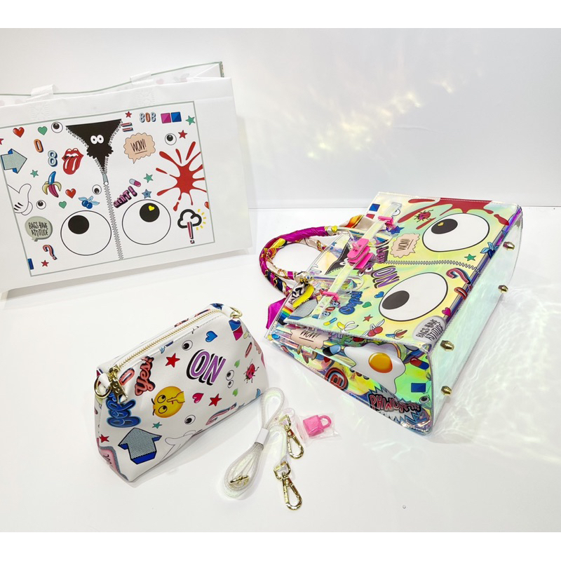 Detail Tas Wanita Lodhye Eye Theme Printed Hologram Double Handle Big Size - SF 1831#