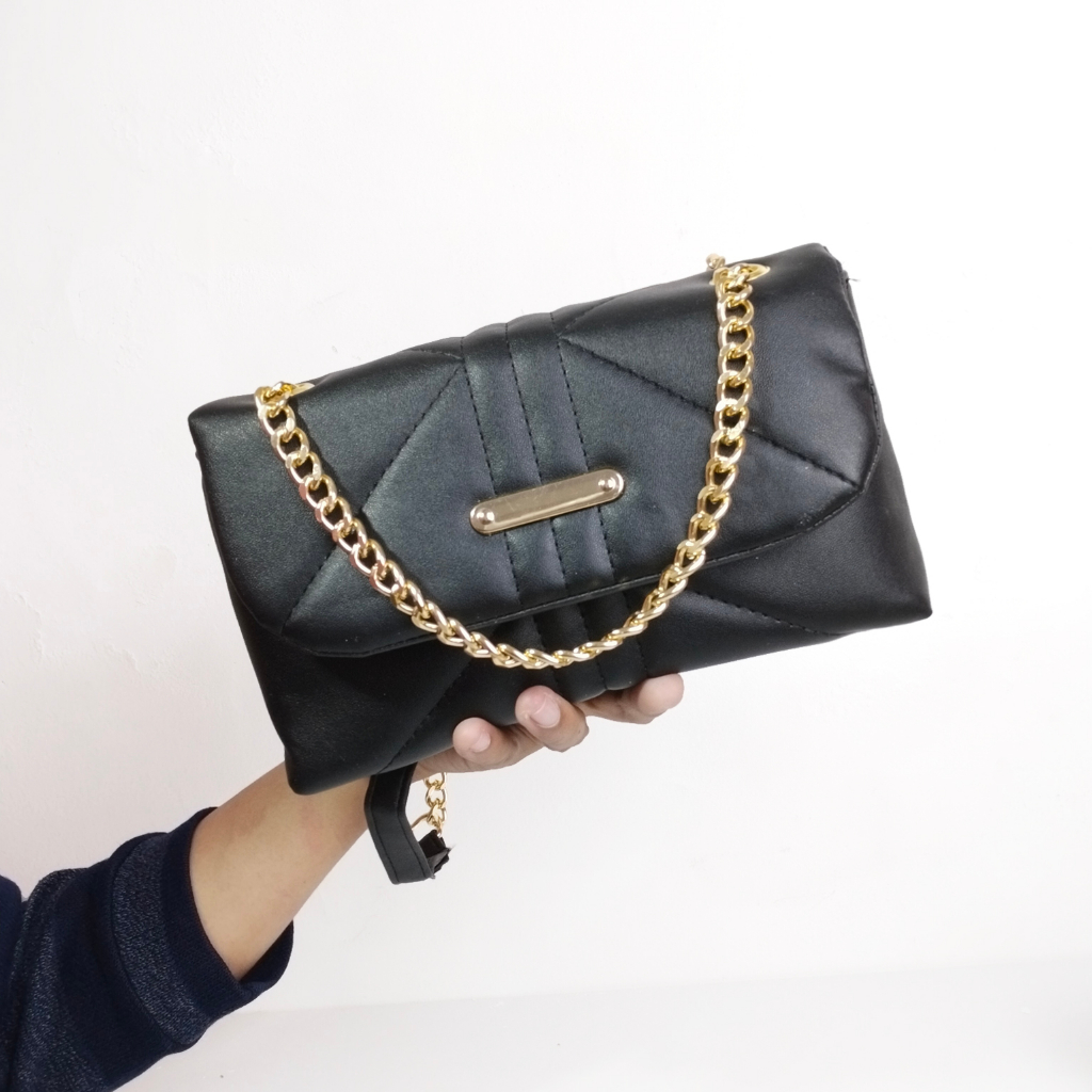 DESKRIPSI: Bahan : Sintetic leather Lapisan dalam : Furing Spundbond Penutup : Kunci Magnet Ukuran (pxlxt): 22 x 8 x 12cm Ruang: 2 Ruang sekat tengah ber-resleting Warna : Hitam, Coklat, Hijau Tali panjang : Tali ulir besi gold mix tali kulit sintetis (tidak bisa dilepas)