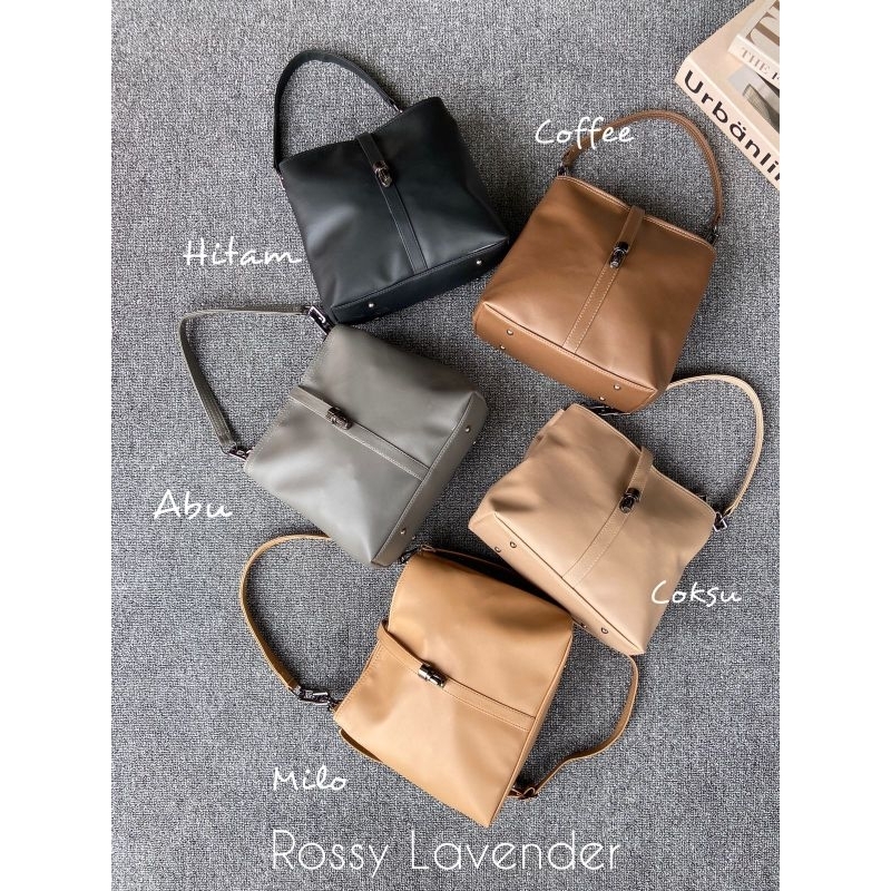 ROSSY LAVENDER NEW BAHAN LAVENDER WARNA HITAM COKSU OLIVE MILO ABU COFFE FREE TALI PANJANG DAN PENDEK PENUTUP RESLETING ADA DUA RUANG JAHITAN RAPI UK 24X 10CM X 21CM BERAT 334GR ECER 45K RES 41K SERI 39K GROSIR 38K PARTAI 35K