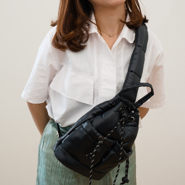 - Panjang tali 95cm ( adjustable ) - Terdat dua slot saku depan - Terdapat Tali serut - Bahan : NYLON