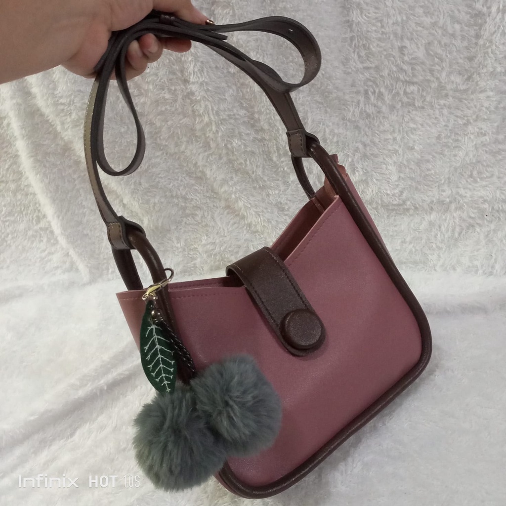 Detail TAS WANITA TOTE BAG POM-POM KEKINIAN / TAS SHOULDER BAG WANITA POM-POM (TIDAK TERMASUK GANTUNGAN)