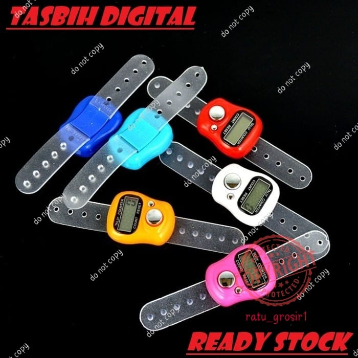 Detail Tasbih Digital: - Desain yang mungil dan praktis - LCD screen display - Kaitan untuk dilingkarkan di jari anda (seperti belt arloji) - Tombol untuk hitungan dan reset untuk mengembalikan ke angka 0 (nol)