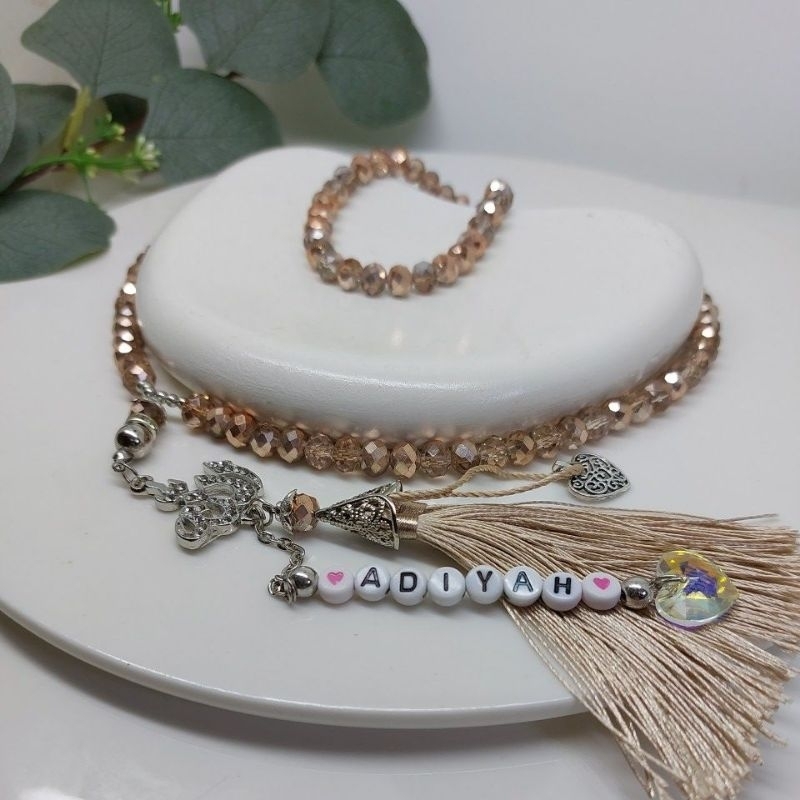 Fashion Muslim > Mukena & Perlengkapan Sholat > Set Perlengkapan Sholat > TASBIH KRISTAL CUSTOM NAMA