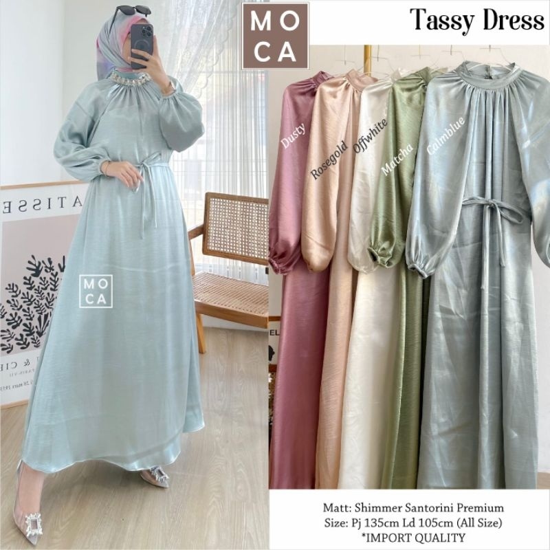 Detail TASSY DRESS ORI MOCA | Ld105 Shimmer Santorini Premium