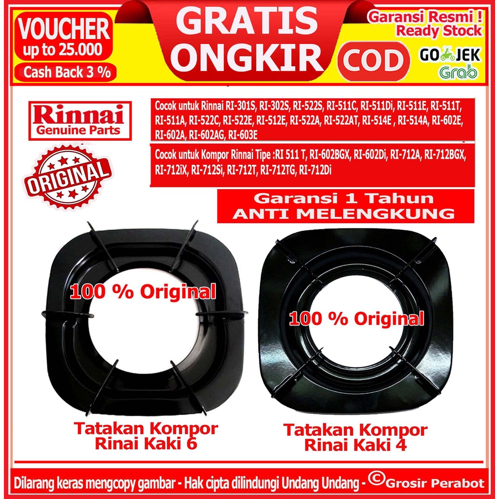 Perlengkapan Rumah > Peralatan Masak > Kompor & Regulator Gas > Tatakan Kompor Gas Rinnai Kaki 4 6 Rinai Dudukan Tungku Kompor Gas Rinnai Rinai Kaki 4 6 Original Tebal Anti Melengkung Ori