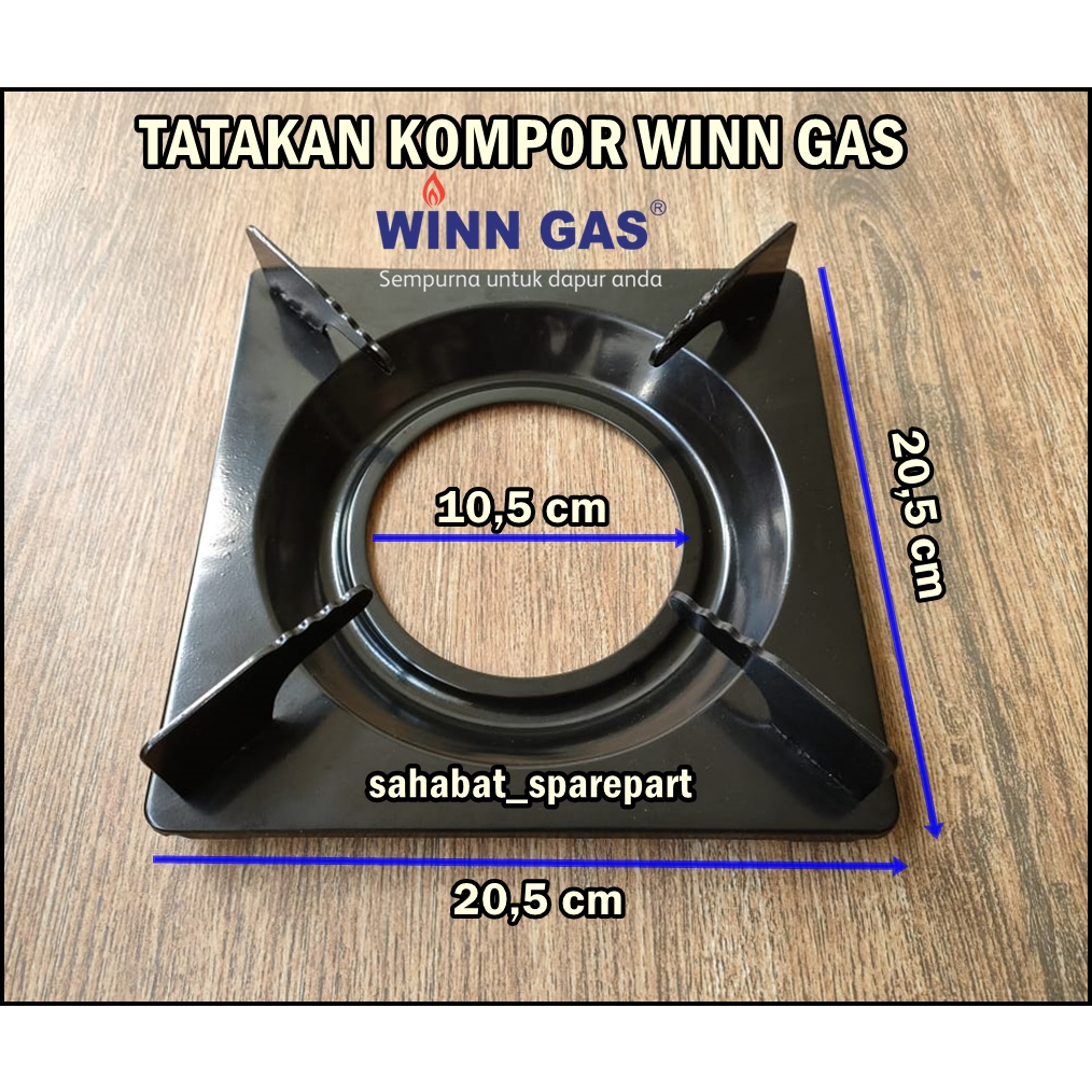 Tatakan kompor winn gass kaki 4. Dimensi (PxL) = 20,5 x 20,5 cm. Diamater lubang kecil 10,5 cm.