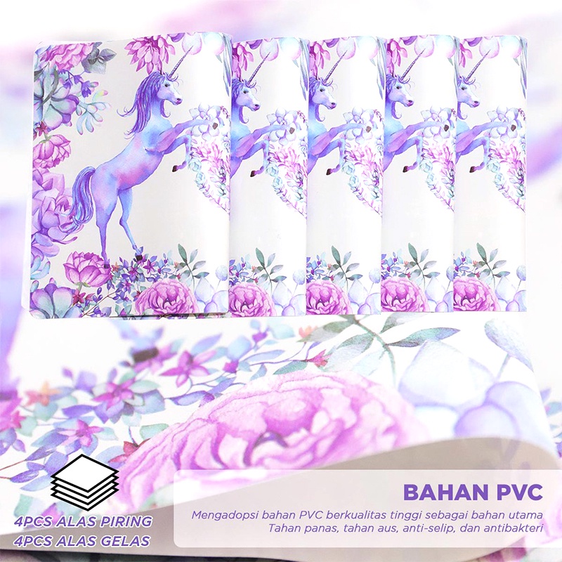 Tatakan Piring Set 4pcs (besar) Dan 4pcs untuk gelas (kecil) Washable Anti Kotor Pvc IMPORT Aplak Meja Ruang Tamu Motif