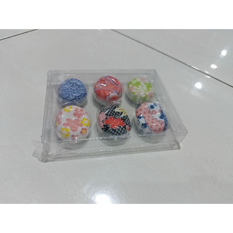 tatakan sumpit keramik ala jepang model chery warna warni bahan keramik ya kak. harga untuk 1 set isi 6 pcs tatakan sumpit. barang bagus dan lucu kakak. ukuran panjang kurang lebih 3.8cm lebar kurang lebih 3 cm barang sesuai foto ya kakak