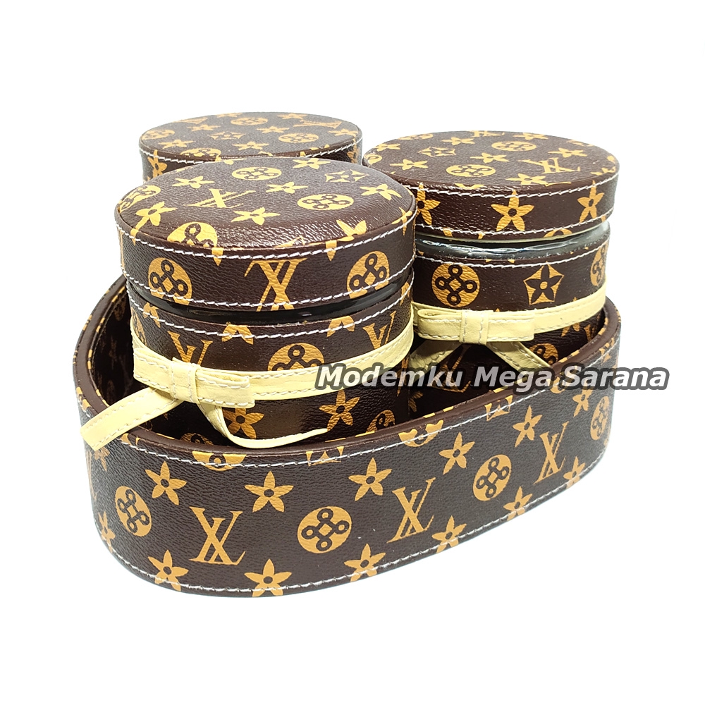 Tatakan Toples Vinyl bentuk Love - isi 3 merupakan tatakan + toples kaca dengan balutan kulit sintetis model jahit, unik khas Jogja dapat dijadikan sebagai penyimpan berbagai makanan ataupun bumbu dapur. Disamping itu dapat pula dijadikan souvenir oleh-oleh yang menawan. Tatakan ini berisi 3 pcs toples kaca yang dibalut dengan vinil yang cantik. Diameter topleS 11cm, tinggi 13cm. Tatakan bentuk Love dengan panjang dan lebar 24 cm, tinggi tatakan 6 cm.