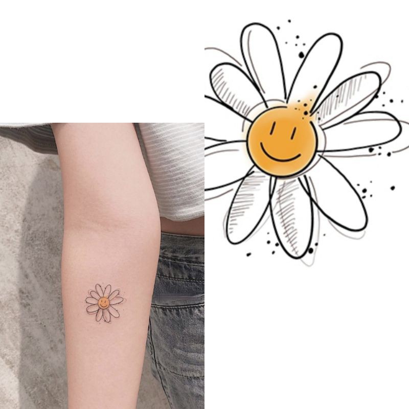 Detail Tato Temporer Bunga Matahari emoji smile Stiker Tato Minimalis - BUNSE