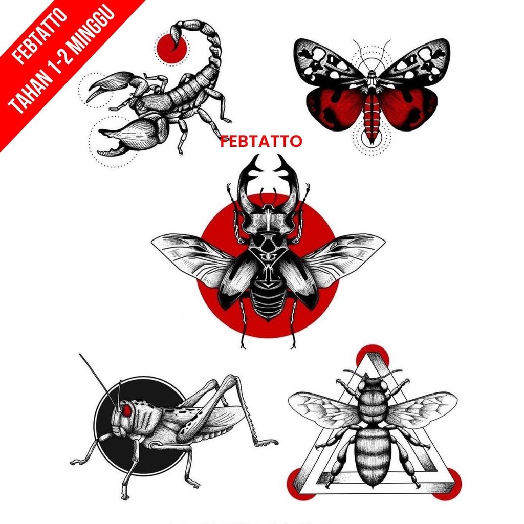 Detail Tato Temporer Hewan Lebah Kalajengking Kupu Kupu Tato kecil Stiker Tatto - HEBA 1-5