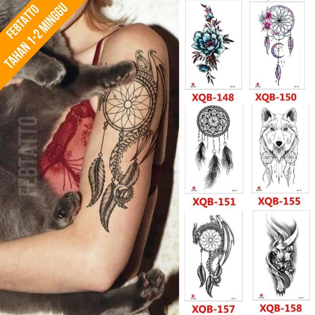 Aksesoris Fashion > Aksesoris Tambahan > Tato Temporer > Tato Temporer Ukuran 21cmx11cm Tato Lengan Tato Dada Tato tangan Tato Kaki Tato Punggung Tato Jari Motif Aesthetic Tatto Temporary Stiker Tato Halal Grosir Tato air motif bunga, dream catcher, serigala XQB 157