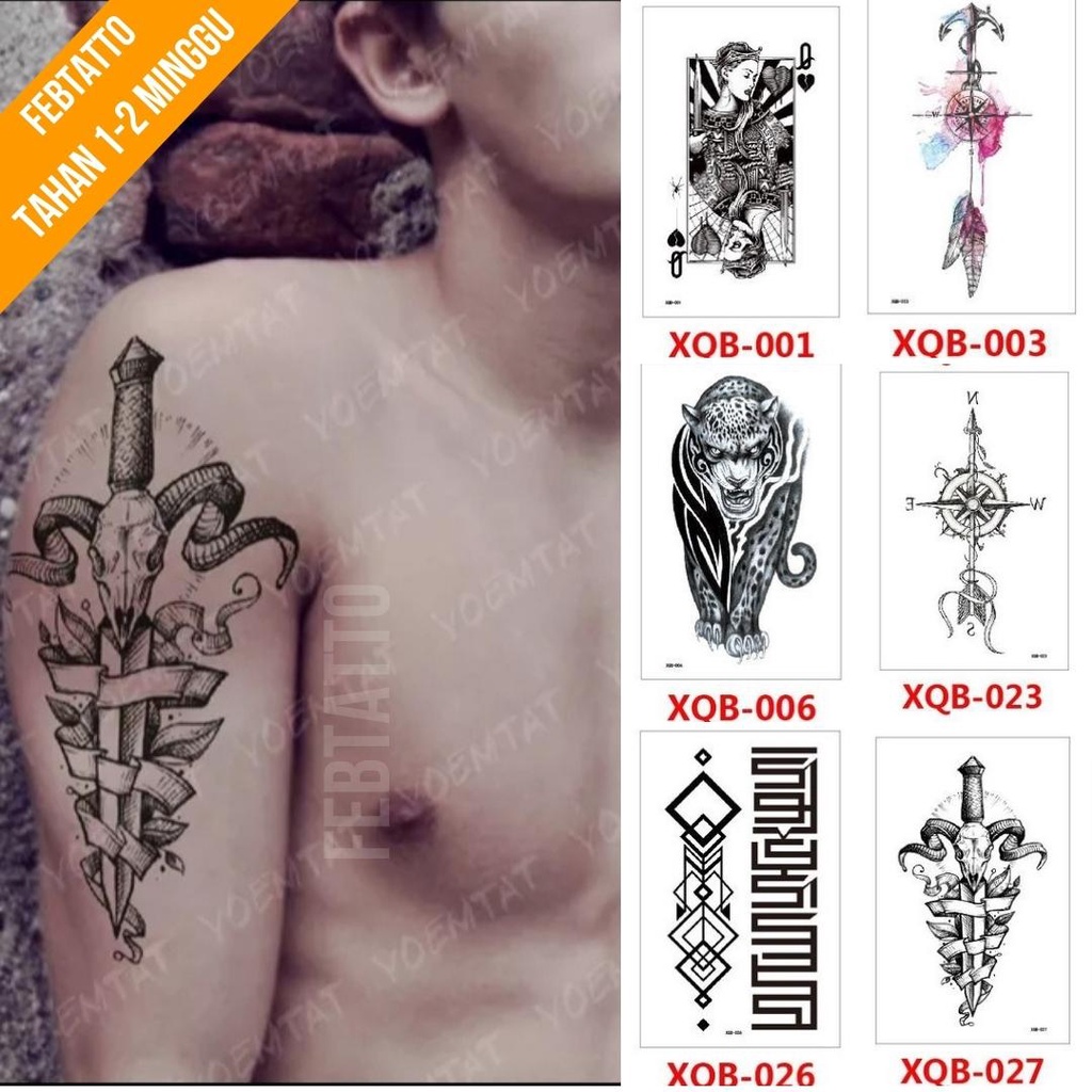 Detail Tato Temporer Ukuran 21cmx11cm Motif Aesthetic Tatto Temporary Stiker Tato Halal Grosir Tato air motif perempuan, jangkar, macan, aksara, pedang, tanduk XQB 027