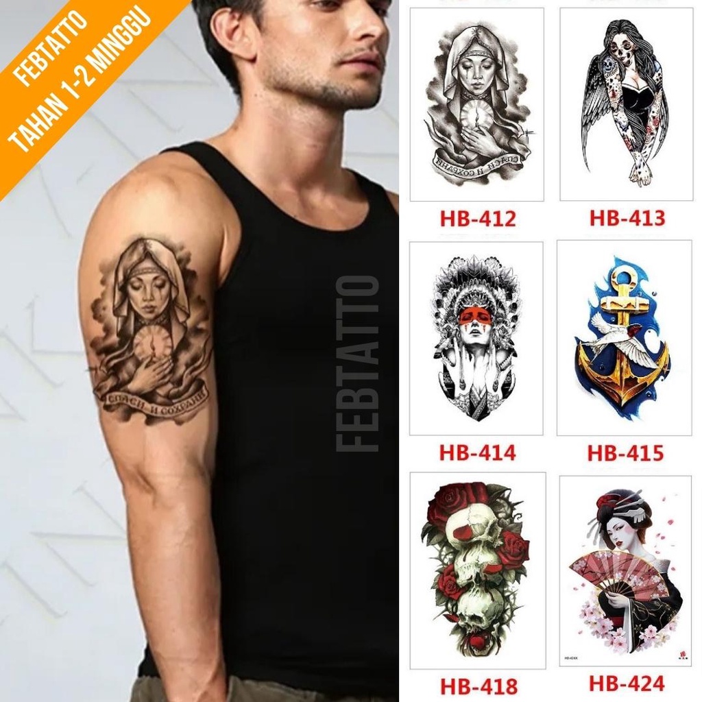 Tato Temporer Ukuran 21cmx15cm Motif Aesthetic Tatto Temporary Stiker Tato Halal Grosir Tato air motif perempuan, suku budaya, jangkar, tengkorak, bunga, ghesia HB 412