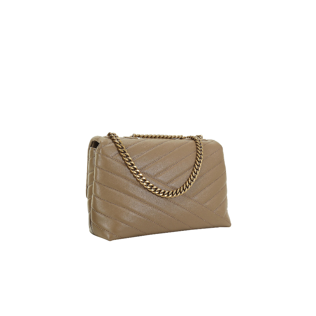 Detail TB Small Kira Chevron Convertible Shoulder Bag Sand GHW (22.5x15x8)
