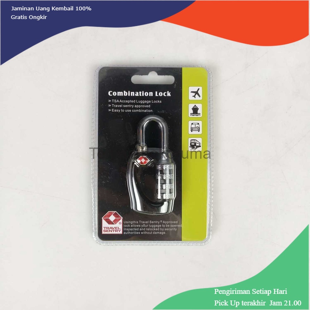 Jika Anda sering bepergian menggunakan pesawat, maka gembok koper dengan standar TSA ini adalah pilihan tepat. TSA merupakan standar gembok yang biasa digunakan untuk keperluan bagasi bandara, khususnya bandara internasional. Gembok ini membuat petugas dapat mengecek isi koper tanpa merusak apapun. Gembok kode pun tidak akan mudah dibobol karena hanya kombinasi angka dari pemilik yang dapat membukanya. Fitur 4 Angka Proteksi Ekstra Agar keamanan koper tetap terjaga, maka gembok didesain menggunakan sistem kombinasi angka. Dengan sistem ini, tidak ada siapapun yang bisa membukanya kecuali mengetahui 4angka kombinasi yang digunakan. Keamanan koper pun akan terjamin tanpa ribet membawa kunci gembok secara terpisah. Angka kombinasi dari pabrik adalah angka 0000. Kualitas Bahan Tak Diragukan Anda tak perlu khawatir dengan pembobolan paksa. Kombinasi material zinc alloy dan plastik membuat gembok ini tetap kuat meskiringan. Gembok koper tidak akan rusak meski dipotong atau ditariksehingga keamanan koper Anda akan tetap terjaga. Amankan Apa Saja yang Berharga Meskipun desain gembok diperuntukkan untuk koper, namun Anda tetap bisa menggunakan gembok ini untuk berbagai jenis tas. Diameter tali gembok yang kecil mampu mengunci setiap bagian dari tas dengan baik tanpa menambah beban yang berarti.