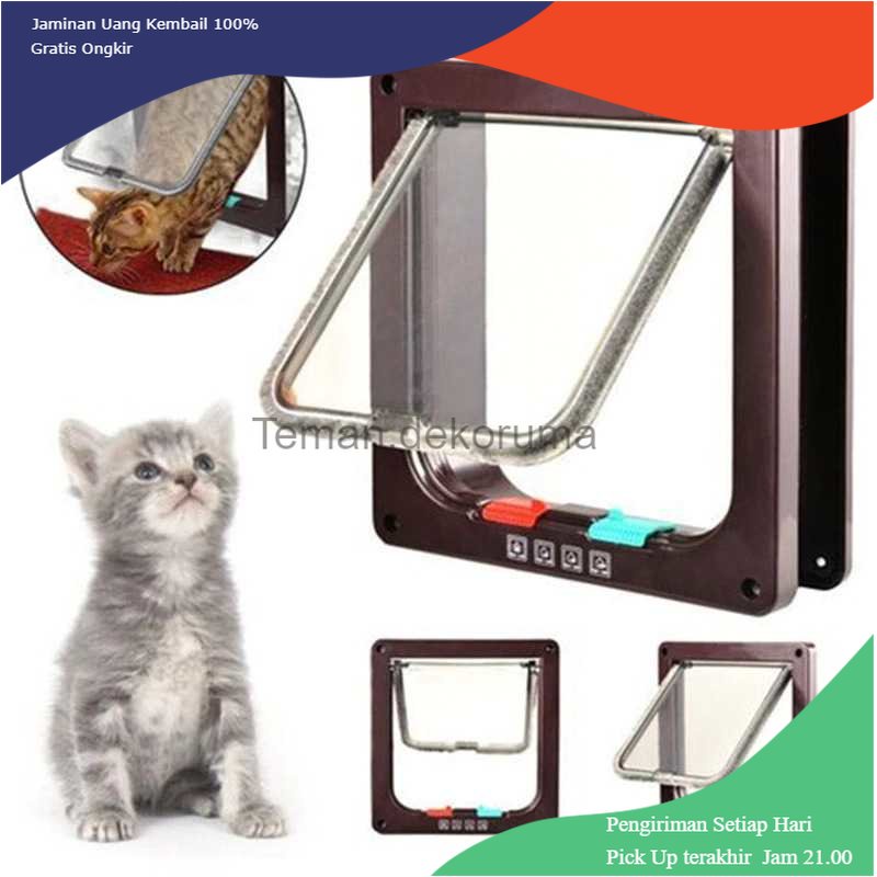 Lubang pintu ini berguna agar hewan peliharaan seperti anjing dan kucing dapat keluar masuk pintu rumah dengan lebih leluasa. Tidak perlu repot membuka pintu besar saat akan mengeluarkan hewan peliharaan. Pintu kecil ini juga dilengkapi dengan sistem penguncian dimana saat pintu dalam keadaan terkunci maka hewan peliharaan tidak dapat sembarangan keluar masuk pintu kecil ini. Fitur Pintu Kecil Bagi Anda yang punya hewan peliharaan dirumah maka wajib mencoba produk pintu kecil yang satu ini. Anjing ataupun kucin dapat keluar masuk dengan leluasa menggunakan pintu kecil ini. Bahan Berkualitas Tinggi Pintu kecil ini terbuat dari bahan plastik tebal sehingga tidak gampang rusak dan awet digunakan dalam jangka waktu lama. Sistem Pengunci Pintu kecil ini juga dilengkapi dengan sistem penguncian dimana saat pintu dalam keadaan terkunci maka hewan peliharaan tidak dapat sembarangan keluar masuk pintu kecil ini.