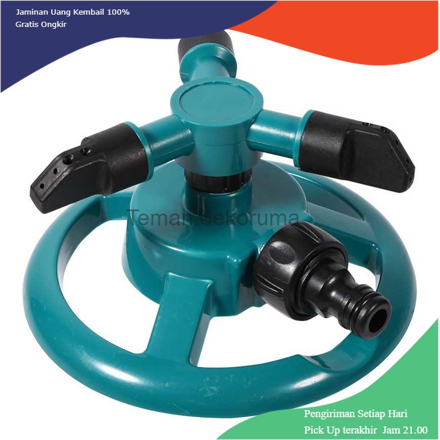Jika Anda memiliki taman yang luas, maka selang biasa tidak akan cukup karena proses penyiraman dapat memakan waktu. Sprinkler ini merupakan pilihan yang tepat untuk meringankan proses penyiraman tanaman Anda. Dengan bantuan tiga buah nozzle tambahan, aliran air akan lebih menyebar dan Anda dapat menyiram tanaman dengan area yang lebih luas dengan cepat. Fitur 3 Kepala Air Untuk mempermudah Anda menyiram tanaman, maka ada baiknya Anda memilih sprinkler dengan jumlah nozzle lebih dari satu. Sprinkler ini memiliki 3 nozzle dengan sudut penyiraman khusus, sehingga sprinkler dapat menyiram area taman yang lebih luas. Dapat Diputar Buat kegiatan menyiram tanaman Anda mudah dan menyenangkan. Sprinkler ini memiliki tuas putar sehingga area taman dapat tersiram air dengan lebih efektif. Pengaturan Mudah Pemasangan sprinkler ini juga sangat mudah, Anda cukup memasangkan sprinkler ini ke selang di rumah Anda.