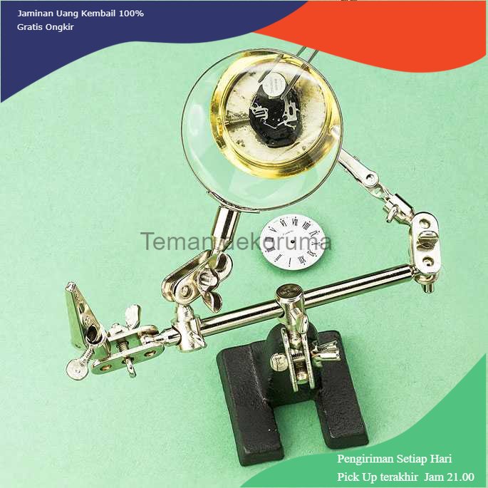 Kaca pembesar ini wajib digunakan ketika Anda ingin memperbaiki jam tangan, pekerjaan solder, dan sekedar cek detail perhiasan. Dengan bantuan stand dan penjepit, memudahkan Anda saat memegang barang yang ingin Anda perbaiki. Pekerjaan tentunya jadi lebih mudah dan efisien dengan bantuan alat ini. Fitur Berguna untuk Reparasi Dengan adanya stand membuat Anda tidak perlu memegang kaca pembesar dan barang yang ingin Anda cek. Cukup jepitkan saja, misalnya jam tangan, pada tang alat ini. Anda cukup fokus memagang alat seperti obeng atau pinset. Fleksibel Bagian clamp kaca pembesar dan penjepit dapat diatur posisinya sehingga Anda dapat menentukan posisi yang nyaman saat Anda bekerja. Stainless Steel Bingkai dari kaca pembesar terbuat dari bahan stainless steel yang tidak mudah berkarat. Sementara frame penjepit, perpaduan antara besi chrome dan stainless steel.