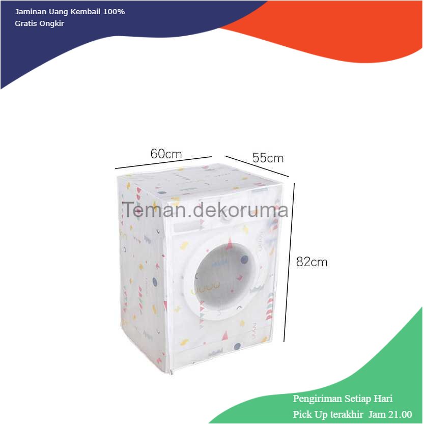 Cover untuk mesin cuci ini berfungsi untuk menutupi mesin cuci saat sedang tidak digunakan agar tidak berdebu. Saat akan digunakan, Anda cukup membuka resleting penutup untuk membuka cover bagian depan. Motif seperti gambar pertama. Fitur Penutup Mesin Cuci Cover ini didesain khusus untuk menutupi mesin cuci sehingga mesin cuci Anda bersih dari debu-debu atau kotoran. Desain Transparan Cover ini memiliki warna yang sedikit transparan agar Anda tetap dapat melihat tombol-tombol pada mesin cuci saat akan digunakan. Model Seleting Terdapat resleting pada bagian depan cover sehingga saat mesin cuci akan digunakan, Anda cukup membuka penutup depan saja.