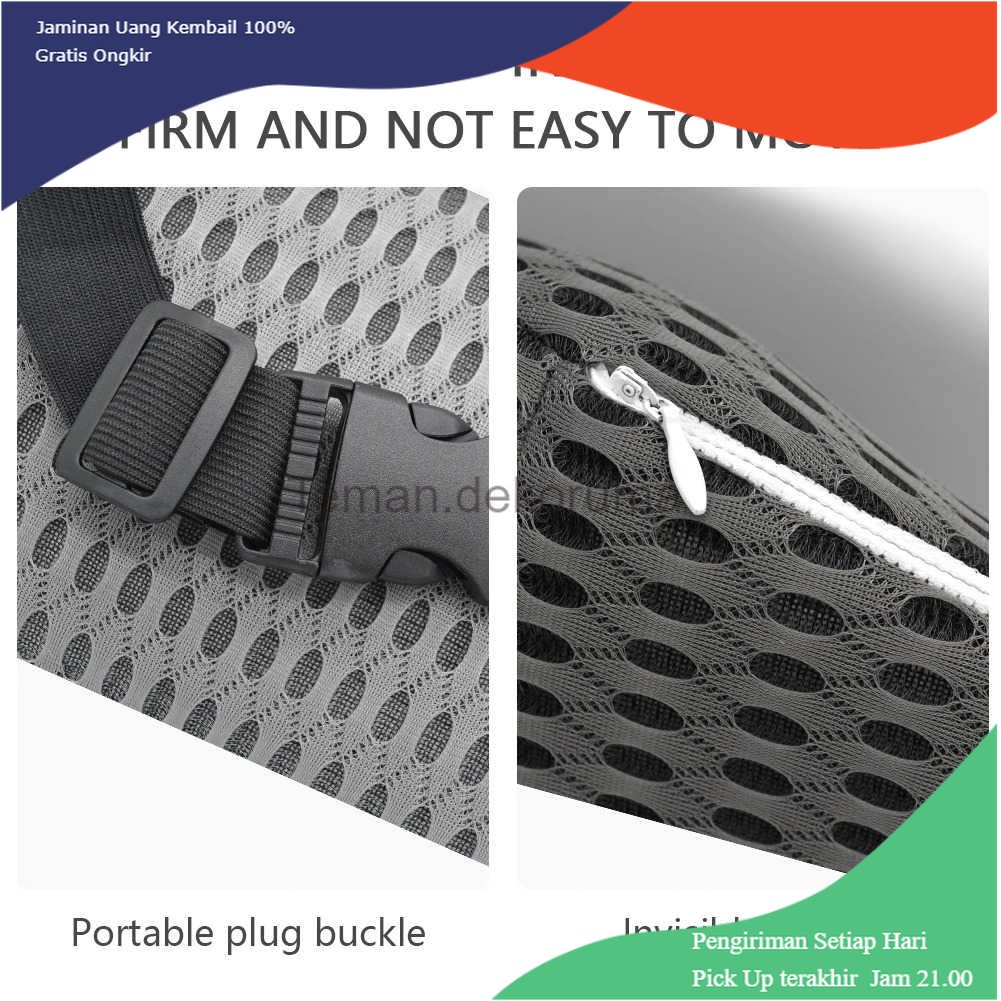 Material Memory Foam dan Kain Mesh Dimensi Bantal Leher: 29 x 14 x 21 cm Bantal Punggung: 47 x 14 x 23 cm