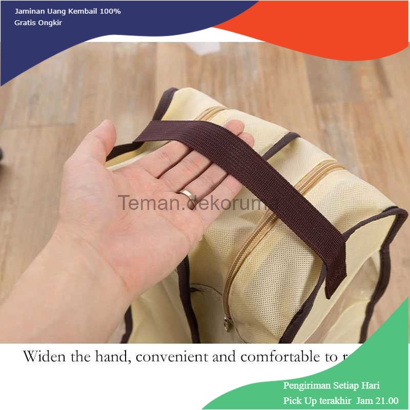 Simpan sepatu kesayangan Anda dengan aman menggunakan tas khusus penyimpanan sepatu dariMikeshea. Bentuk dari tas travel yang didesain khusus menyerupai bentuk sepatu sehingga dapat digunakan untuk menyimpan sepatu dengan mudah. Wajib digunakan saat Anda sedang traveling dan ingin membawa sepatu. Fitur Tas Travel Tas travel ini membuat sepatu Anda tersimpan pada tas khusus sehingga saat masuk ke dalam tas travel tidak bercampur dan mengotori barang-barang Anda lainnya. Bahan Berkualitas Menggunakan bahan kain non-woven yang mana tidak mudah robek dan juga tidak mudah menyerap air sehingga tidak akan ada kotoran yang keluar dan merembes keluar dari tas sepatu ini. Pada tas sepatu ini juga terdapat bagian transparan yang terbuat dari PVC sehingga Anda dapat melihat kondisi sepatu dari luar tanpa perlu membuka tas. Desain Ganda Jika dilihat, tas sepatu ini memiliki 2 slot kompartemen dengan 2 ritsleting yang terpisah agar Anda dapat menyimpan sepasang sepatu kesayangan Anda selama bepergian.