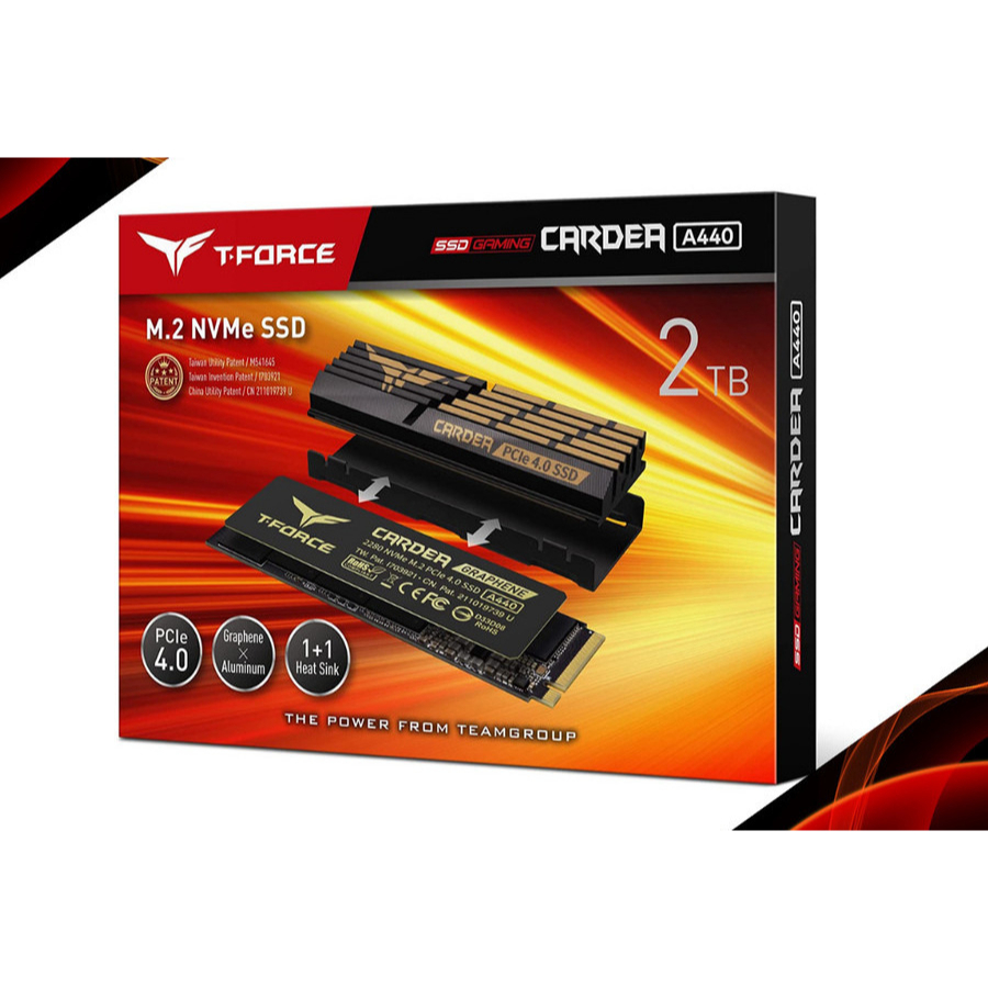 Team Group SSD M.2 NVME 1TB T-FORCE Cardea A440 Gen 4x4 FEATURES Enjoy the lightning speed of the PCIe Gen4 x4 Featuring two patented heat sinks Effective cooling—flexible installation Supports the latest NVMe 1.4 standard Taiwan Utility Patent (number: M541645) Taiwan Invention Patent (number: I703921) China Utility Patent (number: CN 211019739 U)