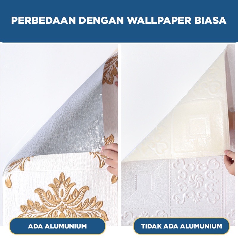 Detail [TEBAL 5.5MM] Wallpaper PREMIUM 70X70CM 3D FOAM / Wallpaper Aluminium Foil Dinding Timbul Motif Baru Model Sultan Batik Bunga High Quality / Wallfoam Motif Batu Bata 70 x 70 CM Dekorasi Kamar Stiker Sticker Dinding Tebal Pintu Jendela