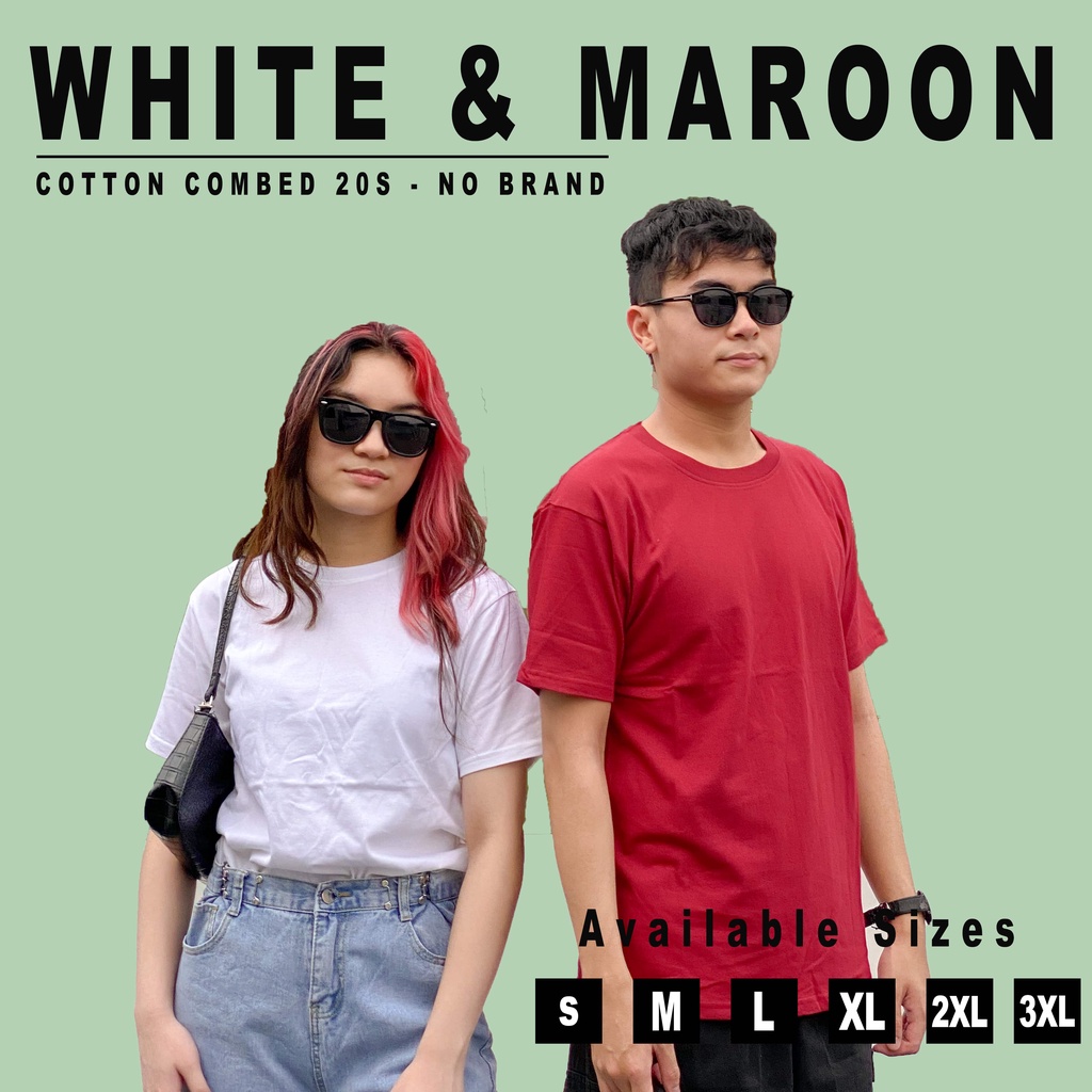 Detail [TEBAL] KAOS POLOS WHITE & MAROON KATUN COMBED 20S | PENDEK PRIA WANITA COTTON COMBED 20 SHIRT