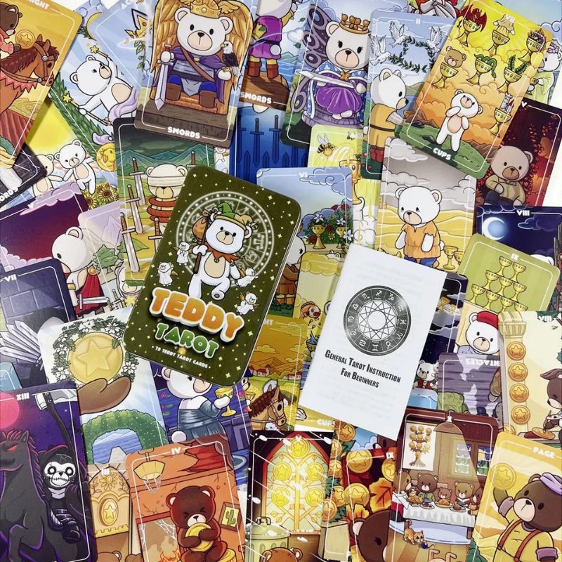 Hobi & Koleksi > Mainan & Games > Dadu, Board Game & Mainan Kartu > Teddy Tarot 9.8x5.7cm kemasan kaleng include guide paper