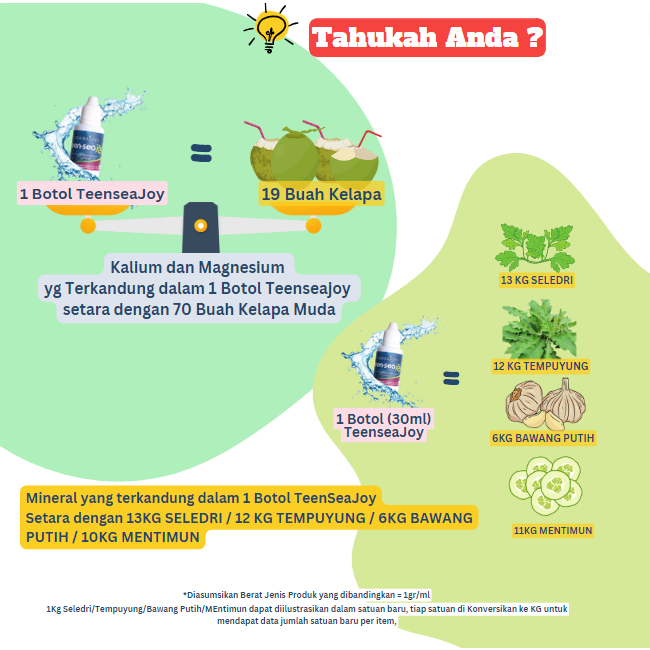 Sementara itu, Deep Sea Ocean Mineral dalam Teen-Sea Joy merupakan bahan alami sumber Multi-Mineral asli Indonesia yang diambil dari air laut dalam lestari yang terjaga, serta kaya akan mineral dari air laut dengan kedalaman ratusan meter untuk menjaga kemurnian dan khasiatnya.