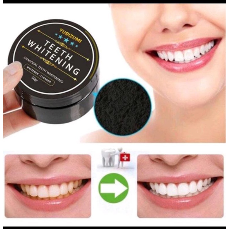 Teeth Whitening Charcoal Ori Activated Pemutih Gigi Kuning Alami Instant Permanen 50gr