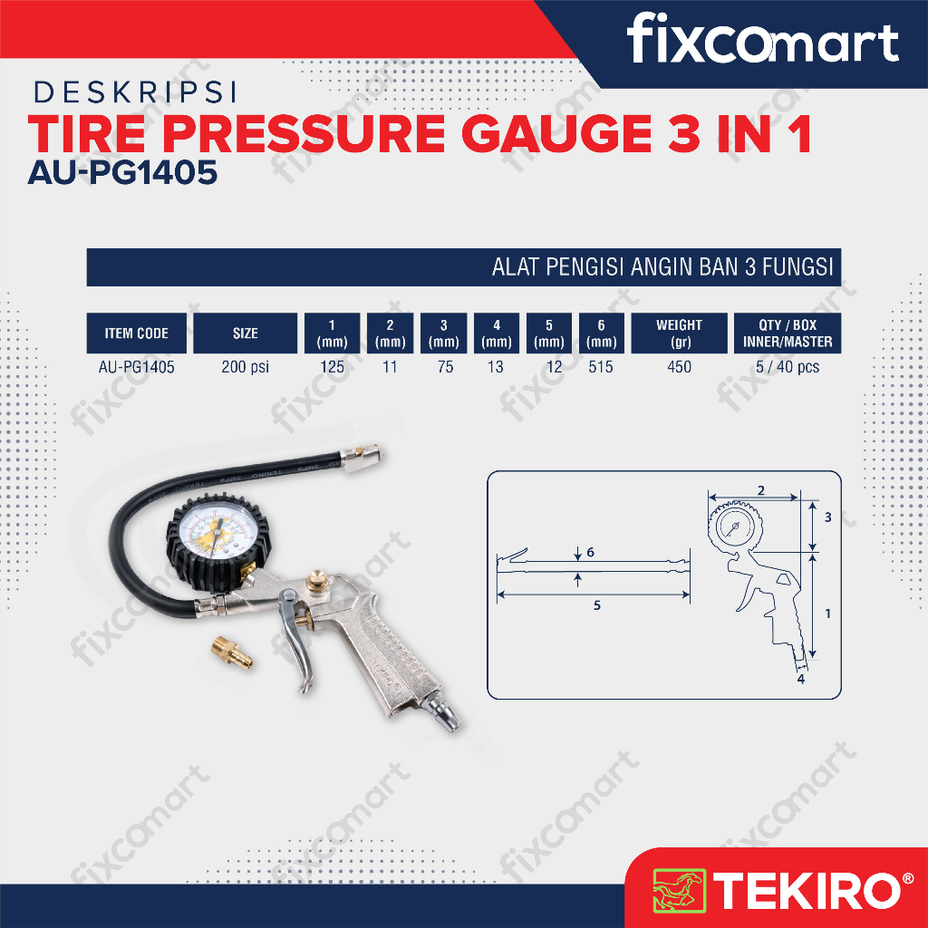 Detail Tekiro Isi Angin 3 Fungsi 220 Psi / Tekiro Tire Pressure Gauge 3 In 1