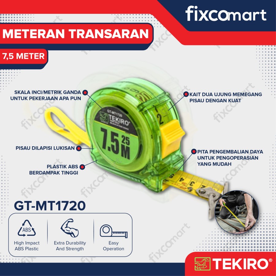 Detail Tekiro Meteran Transparan 7.5 M / Tekiro Alat Ukur Manual
