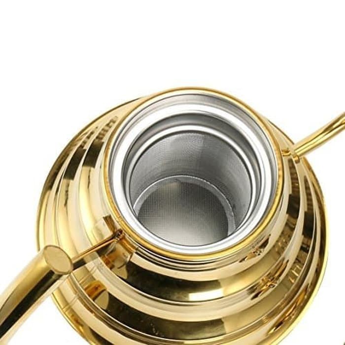 Keunggulan dari Produk ini adalah: - Bahan stainless steel berkualitas tinggi - Gold Finishing yang dipoles - Anti Karat / tahan korosi dan tahan lama - Mudah dibersihkan - Bentuk desain yang unik membuatnya terlihat berdedikasi dan indah. Disamping itu Teko ini memiliki pegangan yang tahan lama yang nyaman dan aman di tangan saat menuangkan air mendidih atau teh atau kopi. Dengan mulut gooseneck, cocok untuk menuang air panas secara tepat ke sistem pembuatan kopi manual.