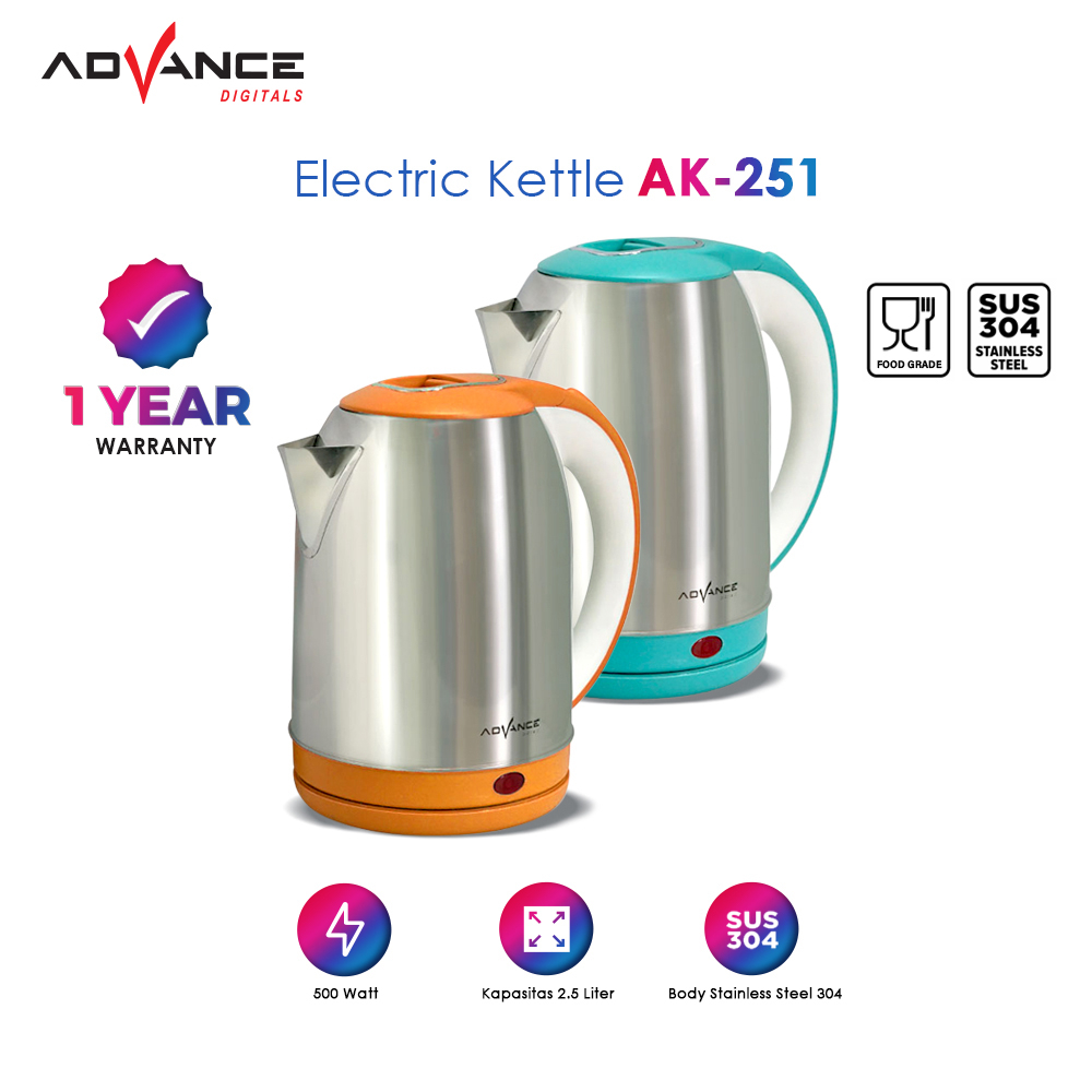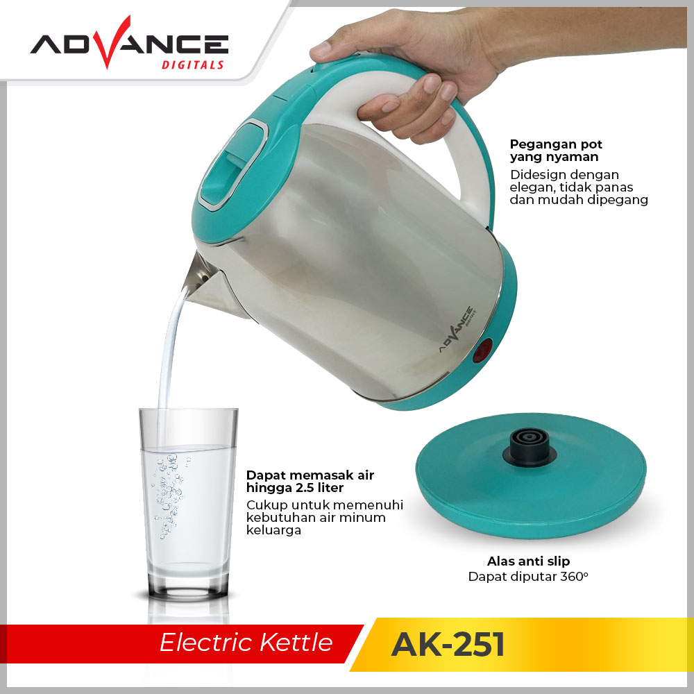 Detail Teko Listrik ADVANCE AK-251 Electric Kettle Kapasitas 2,5 Liter 500Watt