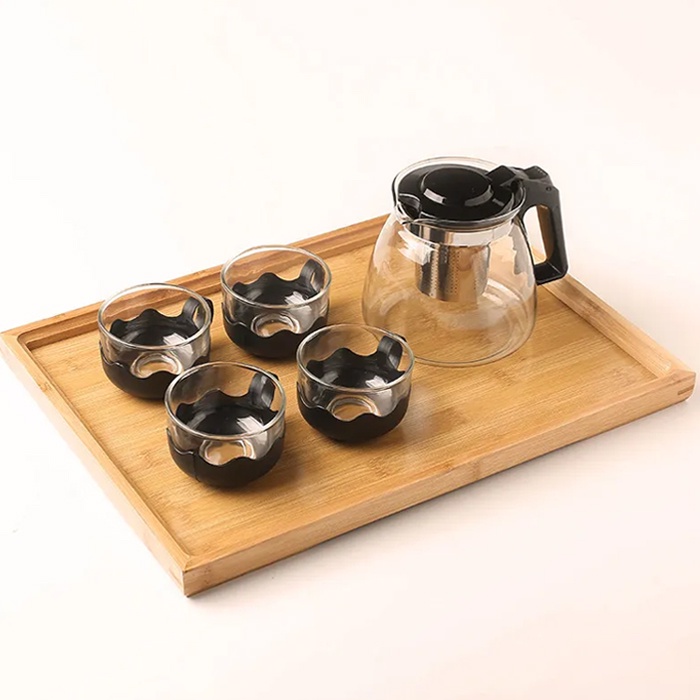 Set Teko dengan cangkir teh ini hadir dengan desain yang elegan dan mewah. Anda dapat menyajikan 4 gelas sekaligus dalam sekali penyajian sehingga saat cocok untuk bersantai bersama keluarga. Teko ini terbuat dari material borosilikat yang tahan terhadap panas maupun dingin.