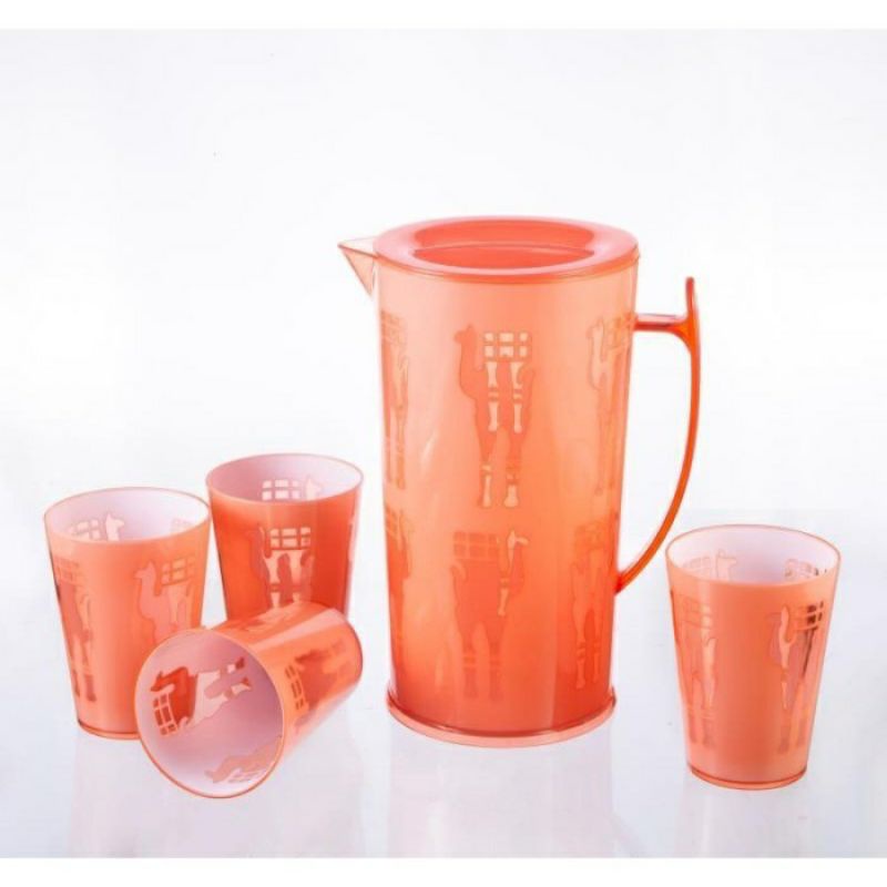 Spesifikasi: - bahan: plastik PP-BPA Free - Uk teko: -/+24 x 13cm - Volume: -/+ 2L - Uk gelas: Dia -/+8cm...T -/+12cm x 4 buah - volume: -/+350ml - Harga per set (1 teko + 4 gelas)