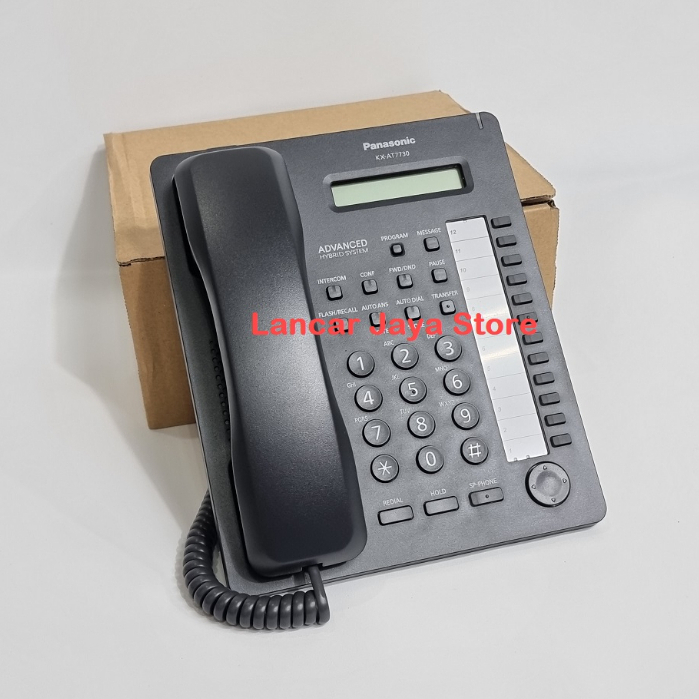 Panasonic KXAT7730 Analog Proprietary Keyphone adalah handset eksekutif untuk sistem KXTE308 dan KXTE824, menggabungkan setiap fungsi Keyphone, termasuk layar LCD 16 digit menyediakan pengguna dengan informasi yang berguna seperti nomor yang dipanggil, hari, tanggal, waktu dan durasi setiap panggilan dibuat. LCD ini juga memberikan pengguna akses mudah ke pemrograman sistem yang canggih.