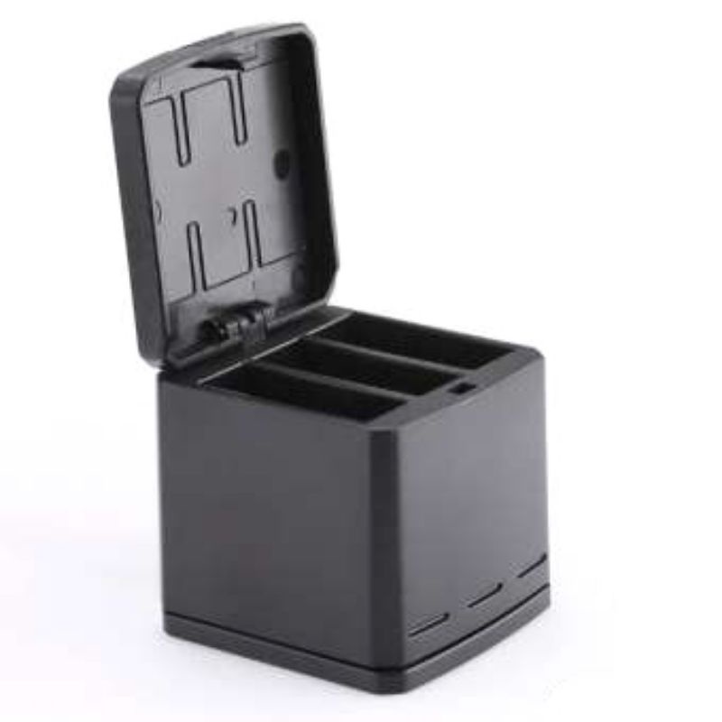 Dengan menggunakan charger untuk baterai GoPro ini Anda dapat mengisi ulang daya baterai secara terpisah dari kamera GoPro Hero 5/6/7. Terdapat 3 buah slot yang bisa Anda gunakan untuk mengisi 3 baterai secara bersamaan. Bentuk dari charger ini memiliki penutup sehingga dapat juga digunakan sebagai box penyimpanan baterai.
