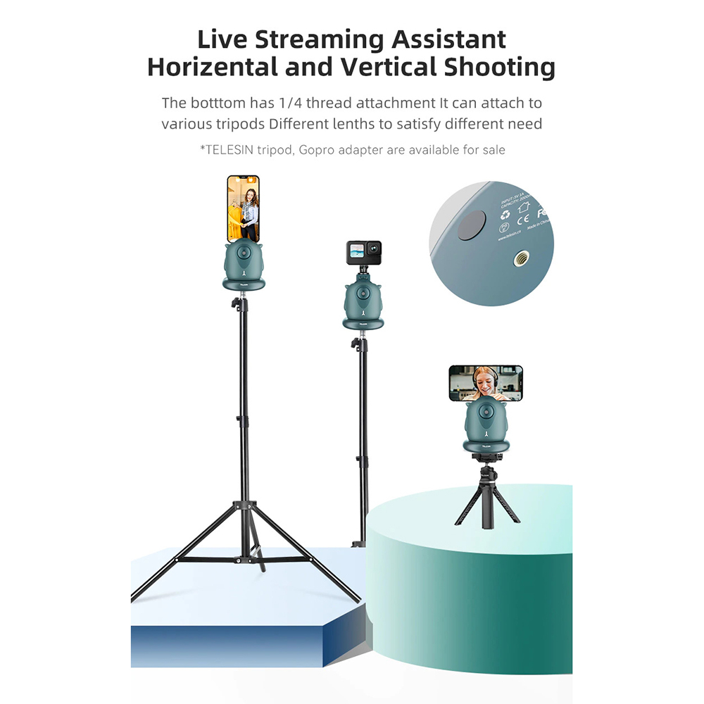 Telesin TE-GPYT-002 merupakan gimbal pintar untuk smartphone dengan fitur active tracking dimana gimbal dapat bergerak secara otomatis mengikuti gerakan tubuh Anda. Dengan ini, Anda seperti memiliki kameramen pribadi yang selalu mengikuti pergerakan Anda. Sangat cocok untuk webcasting dan vlogger youtube. Gimbal ini juga dapat dimanfaatkan sebagai webcam untuk laptop atau komputer Anda.