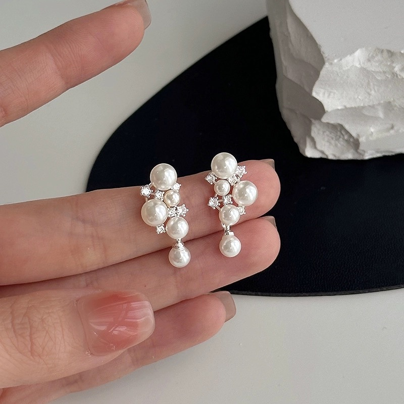 Detail Telinga Mutiara Anggur Kecil Yang Modis French Vintage Style Pearl Earrings Ringan Mewah Premium Earrings Anting
