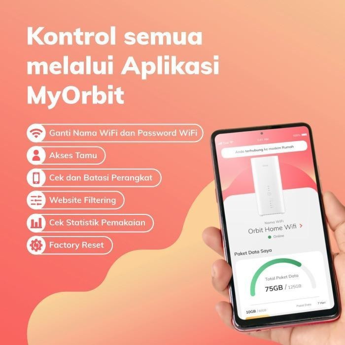 Keunggulan Telkomsel Orbit: - Jangkauan luas dengan sinyal 4G LTE Telkomsel - Bisa beli kuota sesuai kebutuhan tanpa harus terikat biaya bulanan - Aktivasi mandiri dengan mudah & cepat hanya melalui 1 aplikasi MyOrbit - Bisa digunakan di rumah ataupun di mana saja yang terjangkau jaringan Orbit tanpa perlu instalasi ulang