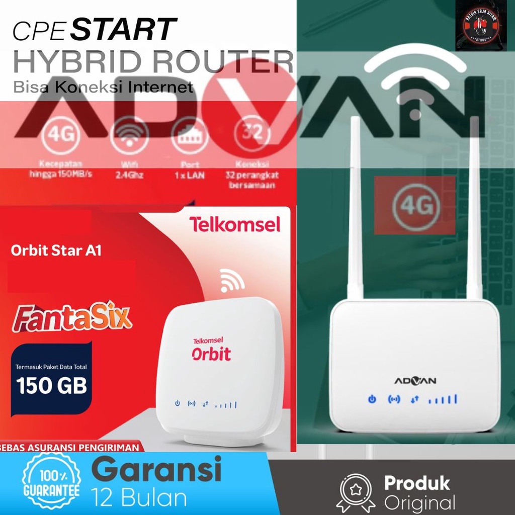 Spesifikasi modem Advan A10: - Kecepatan hingga 150Mbps - Wifi 2.4 GHz - Port 1 x LAN - Koneksi 32 Perangkat Bersamaan